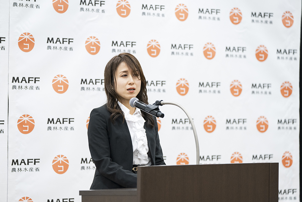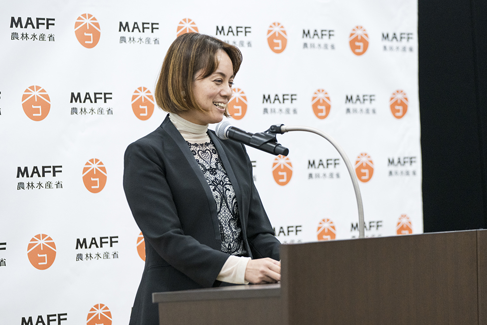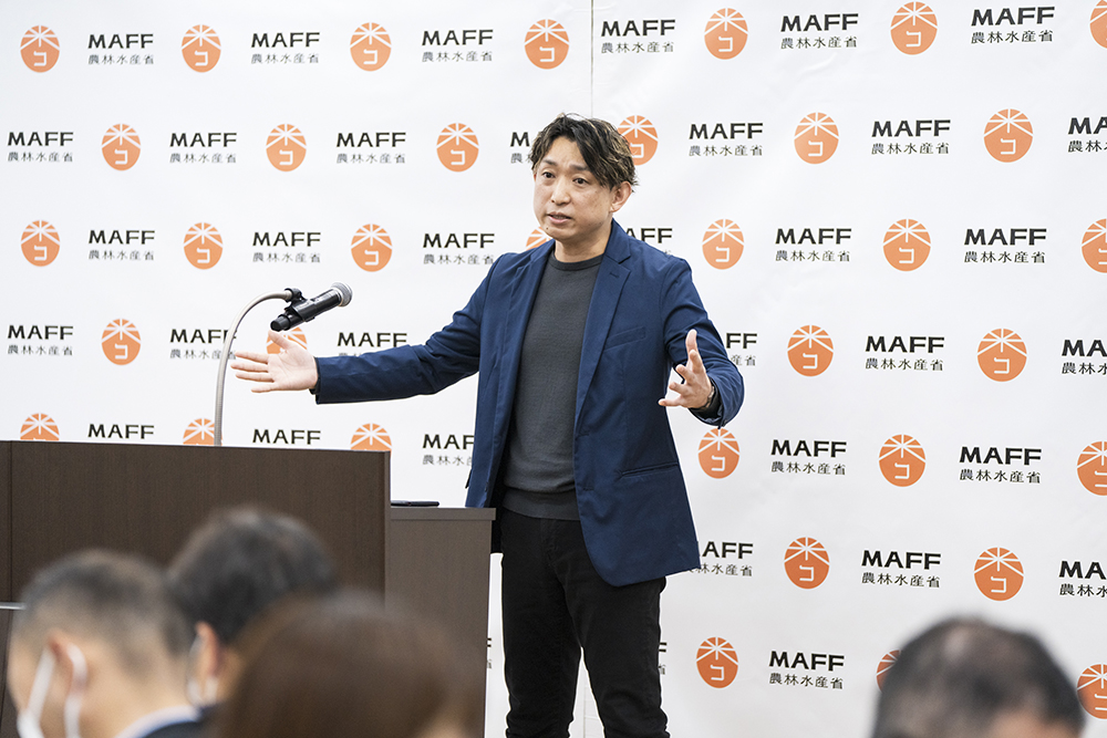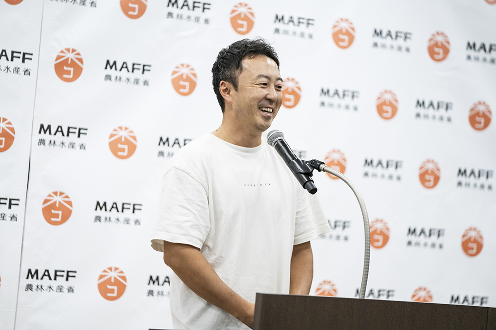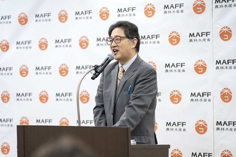 まず登壇したのは、米粉班長こと農林水産省農産局 穀物課 米流通調整官の齊官英雄さん。米コ塾のこれまでの取り組みを紹介し、「米コ塾の会員数は304社、402名。会員の皆さまからの様々な情報が盛り上げてくれています。今後も皆さまとともに、米粉の未来に向けて活動していけたらと」語りました。