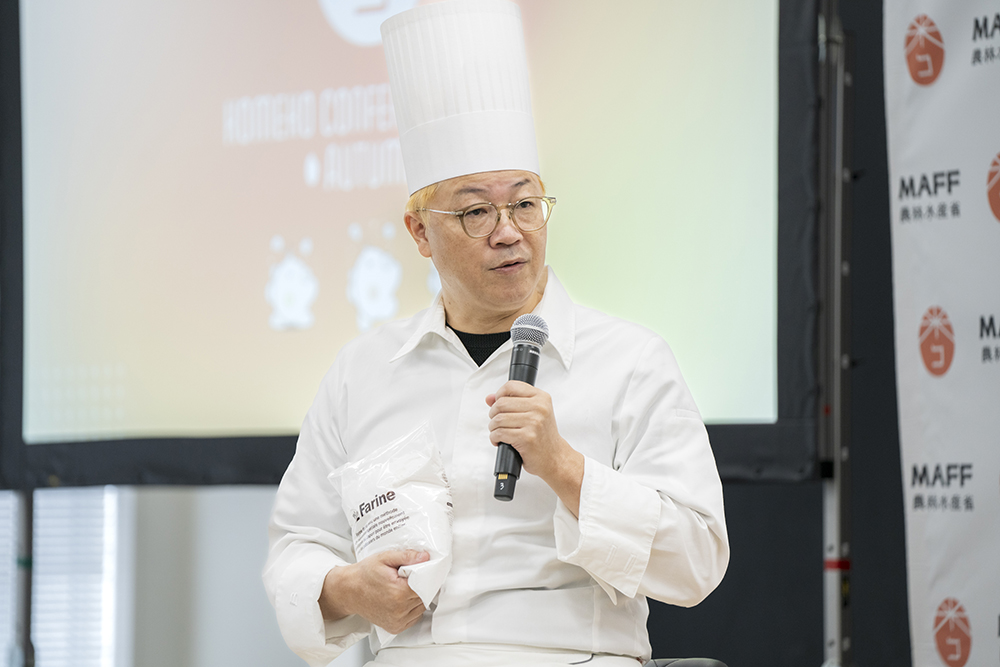 登壇者の話を聞き、辻󠄀口シェフは「米粉のお菓子やパンを試食し、改めて米粉は可能性に満ちたものだと感じました。私は、能登半島の出身で、子どもの頃は畦道の中でやごを捕まえて遊んでいました。そういった原風景を残していくためにも、米粉(市場)をしっかり伸ばしていくことが大切だと感じました。皆さんのお話を聞いて、ことさら頑張っていきたいと思っています」と決意を新たにした様子でした。